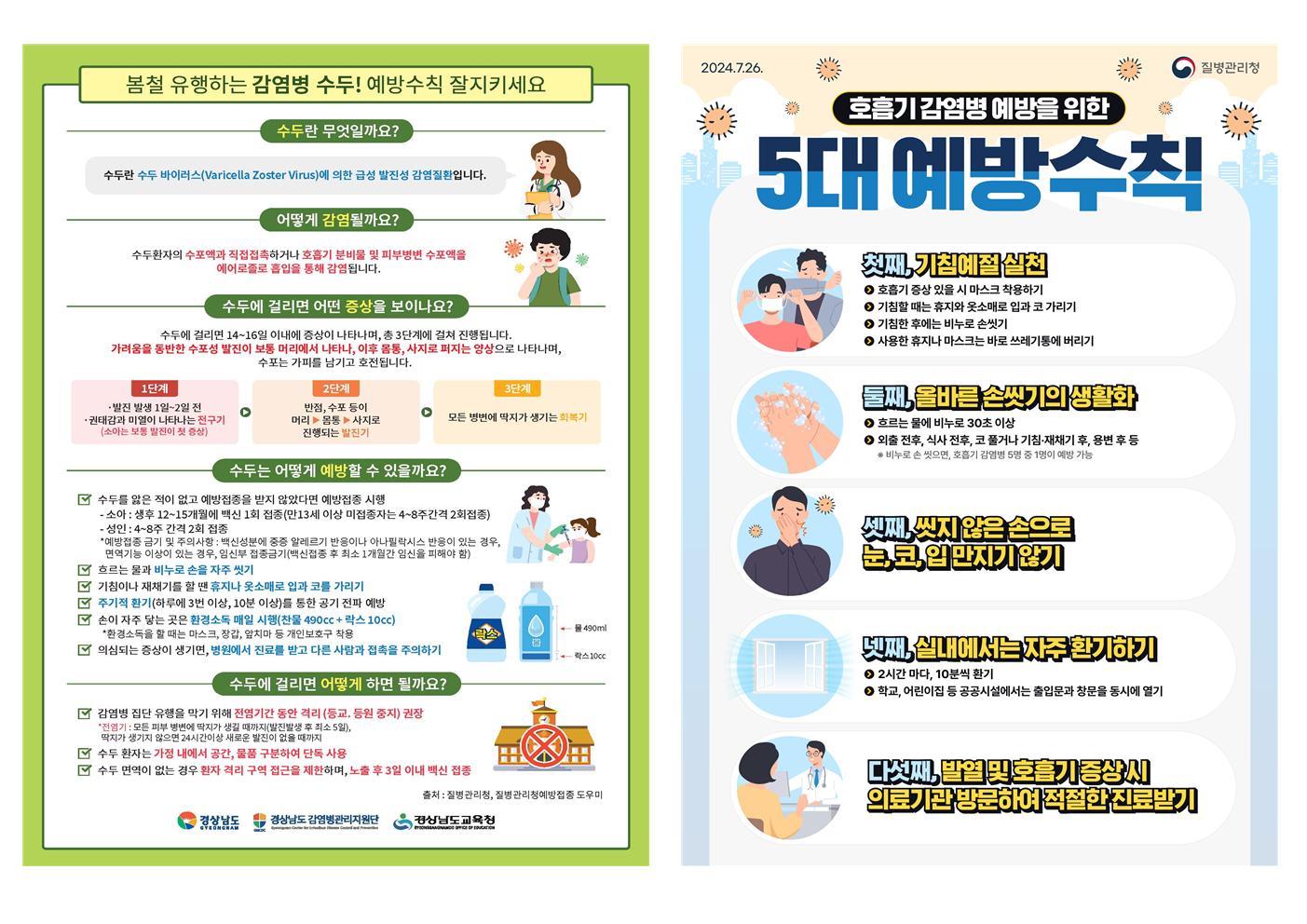 수두 집단발생에 따른 예방수칙 안내문, 호흡기감염병 5대 예방수칙 포스터